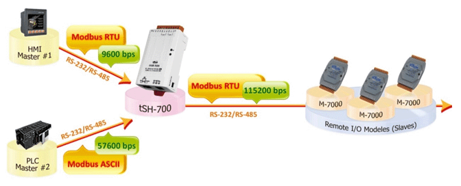 Modbus protocol and Baud Rate Conversion function: