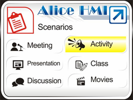 A common meeting room must contain several equipments, such as lights, air conditioners, a projector and a projector screen. This case simply implements a ˇ§Alice HMIˇ¨ to integrate these equipments and create several scenarios to simplify operations. |
