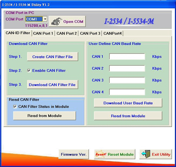 I-2534(工業級4埠CAN Switch)與I-5534-M(鋁擠型金屬外殼強健型工業級4埠CAN Switch) : 韌體及工具軟體功能升級