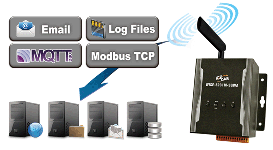 WISE-5231M-3GWA支援3G行動上網,搭配3G SIM卡即可透過行動網路發送電子郵件,或將資料記錄檔案回送遠端FTP伺服器。