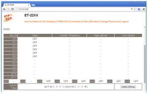 PETL/tET/tPET/ET-2200系列模組在 DO 部份提供了 PWM 輸出的功能,每個 DO 通道可個別規劃不同的頻率的 波形輸出,各通道可獨立或同時運作。使用者也可以對各通道設定其個別的 Duty Cycle 參數 (工作週期,佔空比),High Duty Cycle 代表的就是一個訊號為 “ON” 的時間 (單位:ms) ,反之 Low Duty Cycle 就相對為狀態 “OFF” 的時間。啟動 PWM 的功能,就可由模組定時且自動的切換 ON/OFF 開關 (例:警示燈之閃爍控制), 而不需由遠端中控機不停的 ON/OFF 切換,從而降低控制系統的複雜度,並且提升 ON/OFF 切換的時間準確度。 |