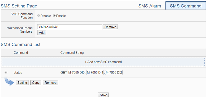 After you finish all the SMS Command selections and settings, click “Save” button to save the settings.