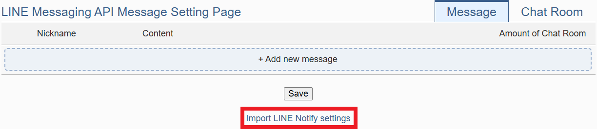 At the bottom of the LINE Messaging API message setting page, there is an option to “Import LINE Notify settings”. Clicking this will copy the LINE Notify messages and related settings to the LINE Messaging API settings, and logical rules will convert the action of sending LINE Notify messages into sending LINE Messaging API messages. However, due to the structural differences between LINE Messaging API chat rooms and LINE Notify chat rooms, users still need to manually replace the LINE Notify chat rooms with LINE Messaging API chat rooms.