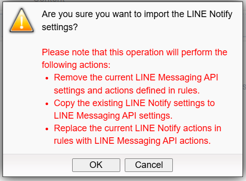 - Do not click import repeatedly, as this may delete logical actions that have already been converted to LINE Messaging API.