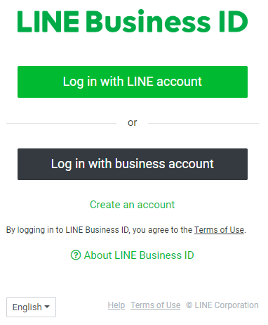 Before creating a LINE Official Account, you need to log in to LINE Business ID using your LINE account or business account.