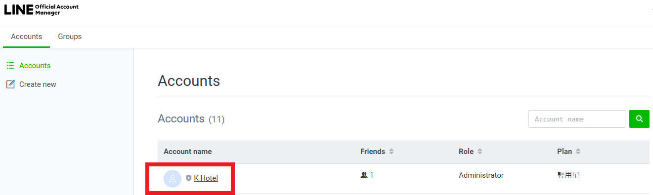 After the official account is created, go to the LINE Official Account Manager website to configure it. In the account list, select the account you just created.