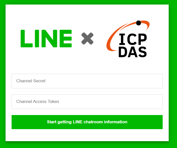 After clicking the “Add new chat room” button, WISE will open a chat room ID recording window as below. Enter the Channel Secret of the official account to be used in the “Channel Secret” field and enter the Channel Access Token of the official account to be used in the “Channel Access Token” field. Click the “Start getting LINE chatroom information” button.