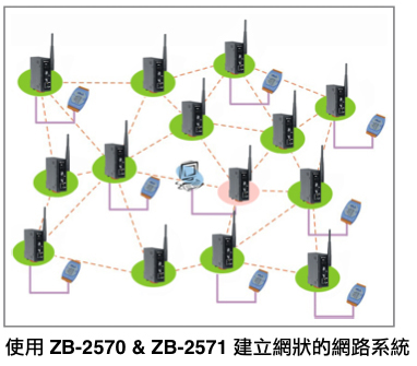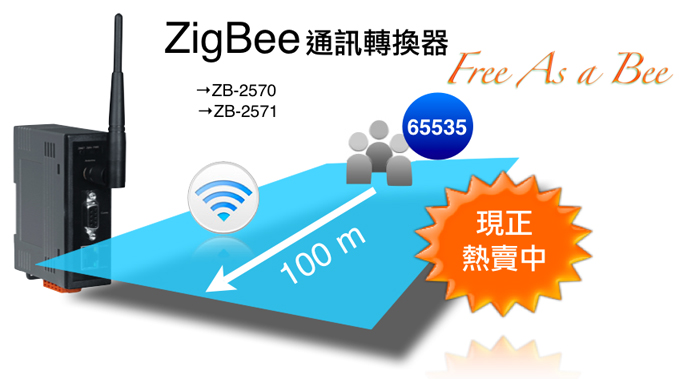 泓格科技於今年夏天推出ZigBee通訊轉換器,包括主控端的ZB-2570以及從端的ZB-2571。這兩個產品完全符合IEEE802.15.4的無線傳輸標準,並且可以應用在無線個人網路(WPAN)的架設,不論是星狀,樹狀或是網狀的網路系統都難不倒它,甚至可以同時並存65535個節點,而且ZigBee的傳輸距離可達到100公尺之遠!只要使用ZB-2570以及ZB-2571,就可以很迅速的將乙太網路/RS-485/RS-232的設備全部連結到無線網路之中。 |