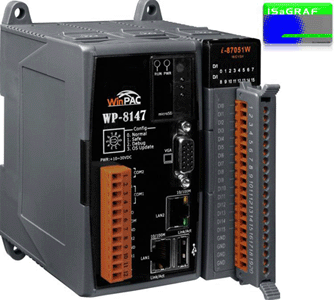 WP-8147支持 ISaGRAF 軟體 3.4x / 3.5x 版本, 可用階梯圖 (Ladder), 功能方塊 (FBD), ST 文字, IL , SFC 與 流程圖 (FC) 等PLC程式語法來設計出控制邏輯. WP-8147與前一代之控制器WinCon-8x47/8x37系列具有高度相容性, 99%的原有應用程序可直接移植至新款控制器上使用. 若使用者對於應用程序的移植上有任何疑難雜症, 泓格科技樂意協助您無痛轉移. WP-8147使用高達520MHz速度的中央處理器並搭配各式備援的功能以增進使用於惡劣應用環境中的穩定性, 像是雙電源輸入, 雙電池備援SRAM, 雙乙太網路埠等. WP-8147控制器內 ISaGRAF 程序的運行速度約是前一代系列的 1.5 ~ 2 倍快.