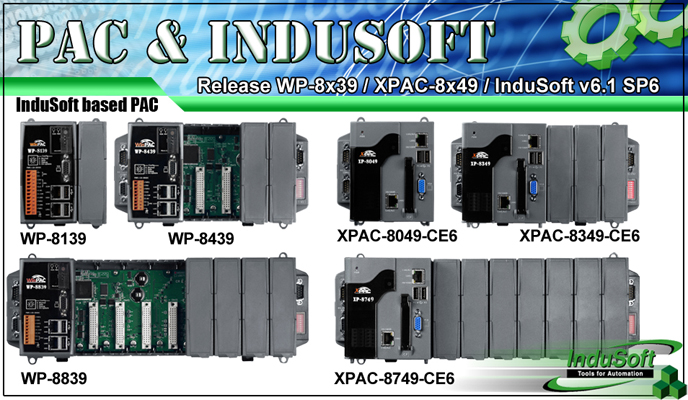 發佈 WinPAC-8139/8439/8839 (WP-8x39), WinPAC-8149/8449/8849 (WP-8x49), VP-23W9/VP-25W9 及 XPAC-8049/8349/8749-CE6 (XPAC-8x49-CE6)產品,全系列 PAC 更新支援 InduSoft v6.1 SP6 版本,並可接受訂購. |