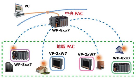 此兩組系統機制, 放在中央控制站與地區控制站的PAC控制器是採用泓格科技的 WinPAC-8xx7 (WP-8147, WP-8447,