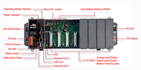 FTP server, Web server (supports VB script, JAVA script), Embedded SQL server |