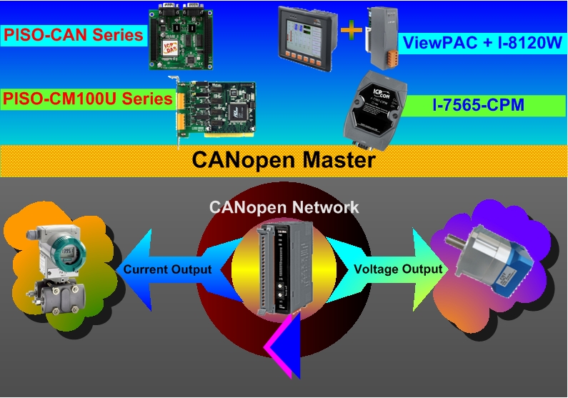 The CAN-2024C module follows the CiA DS-301 version 4.02 and DSP-401 version 2.1. It is easy to access the analogue I/O status and set the configuration by using the standard CANopen protocol. The CAN-2024C has passed the validation of the CiA CANopen Conformance Test tool. Therefore, the provided EDS file is standard for any other standard CANopen masters. Owing to the 4-channel analog output and the CANopen masters of ICP DAS, you can quickly build a CANopen network to approach your requirements. For more information about the CANopen master interfaces and other CANopen products, please refer to the following web site.