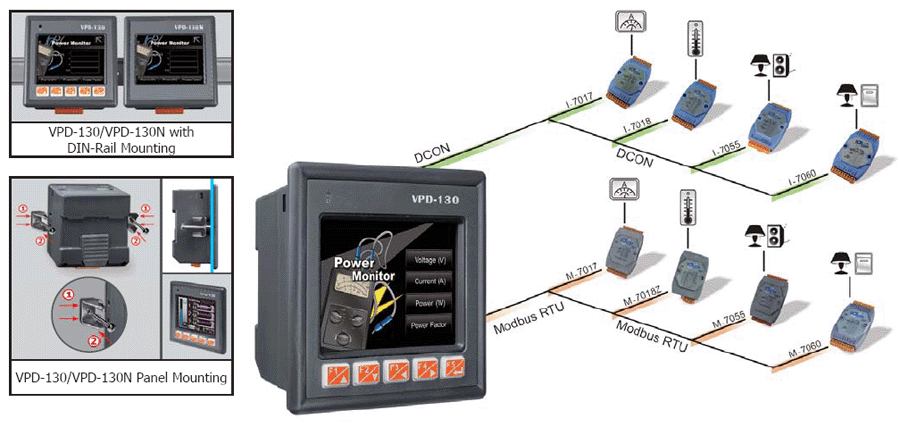automation systems, and make them more intuitive and efficient. Either setup new system installations or complete system retrofits, VPD series stands out for its wide variety of communication methods. Its built-in communication ports include RS-232/RS-485, and USB interface, enable integration into the system allowing users to control, monitor I/O at the remote sides and update firmware directly from the central computer. Besides, the built-in non-volatile storage makes VPD series more reliable for rugged environments.