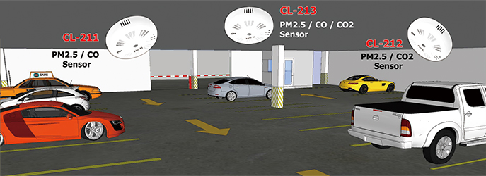 The air quality automation system for indoor or underground parking lot can use the CL-200 series modules to monitor the health and safity information, such as PM2.5, CO, CO2, temperature, humiditym, dew point, and more... |
